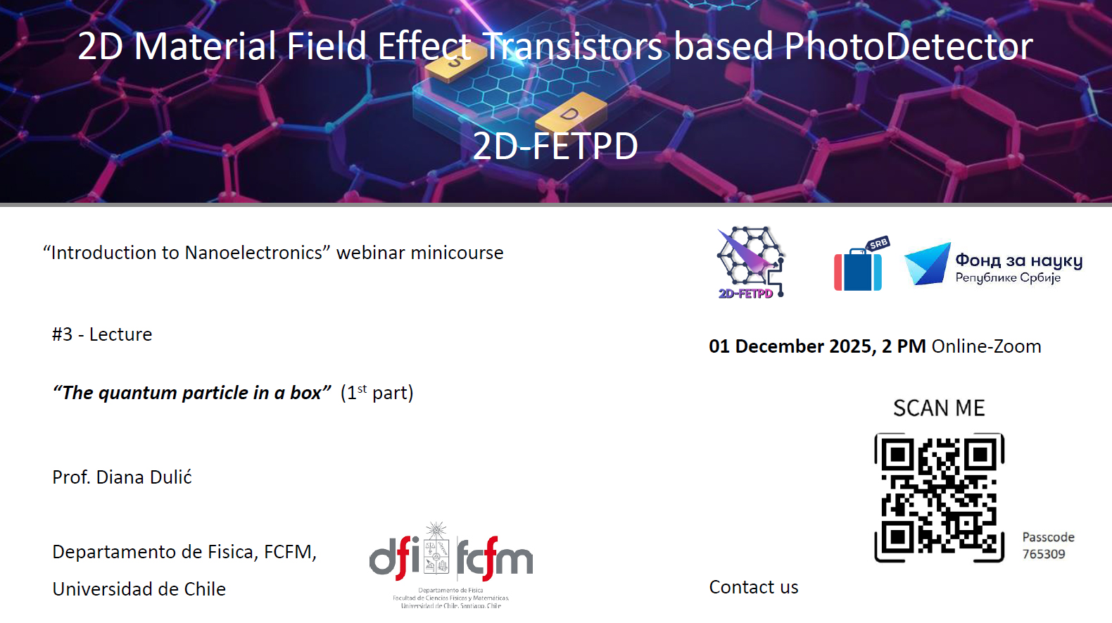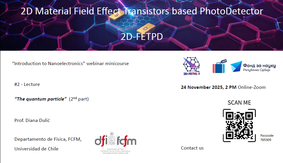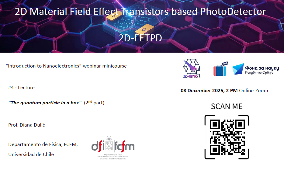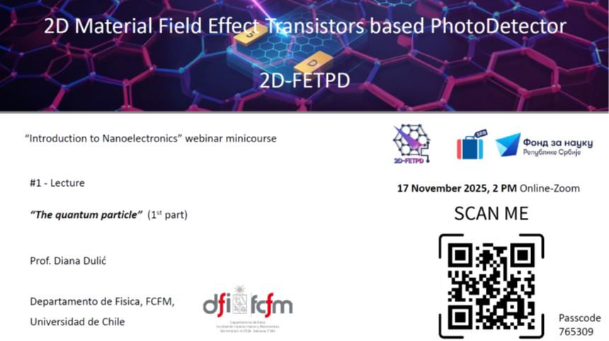 The second lecture in the series, entitled “The Quantum Particle – Part 2,” was conducted on November 24, 2025, by Diana Dulić as part of the webinar mini-course Lectures in Nanoelectronics. It provided a basic introduction to quantum electronics that will support a better understanding of nanoelectronics.