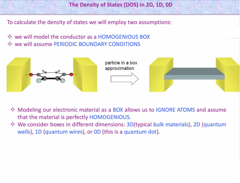 The fourth lecture in the series, The Quantum Particle in a Box – Part 2,” was delivered on December 08, 2025, by Diana Dulić as part of the webinar mini-course Lectures in Nanoelectronics. In this lecture, we discussed how electron confinement depends on the dimensionality of a structure. To simplify the analysis, the material is modeled as a “particle in a box.” This approach ignores the atomic structure and assumes the material is perfectly homogeneous. Depending on the number of confined dimensions, we distinguish between three-dimensional systems (bulk materials), two-dimensional systems (quantum wells), one-dimensional systems (quantum wires), and zero-dimensional systems (quantum dots).